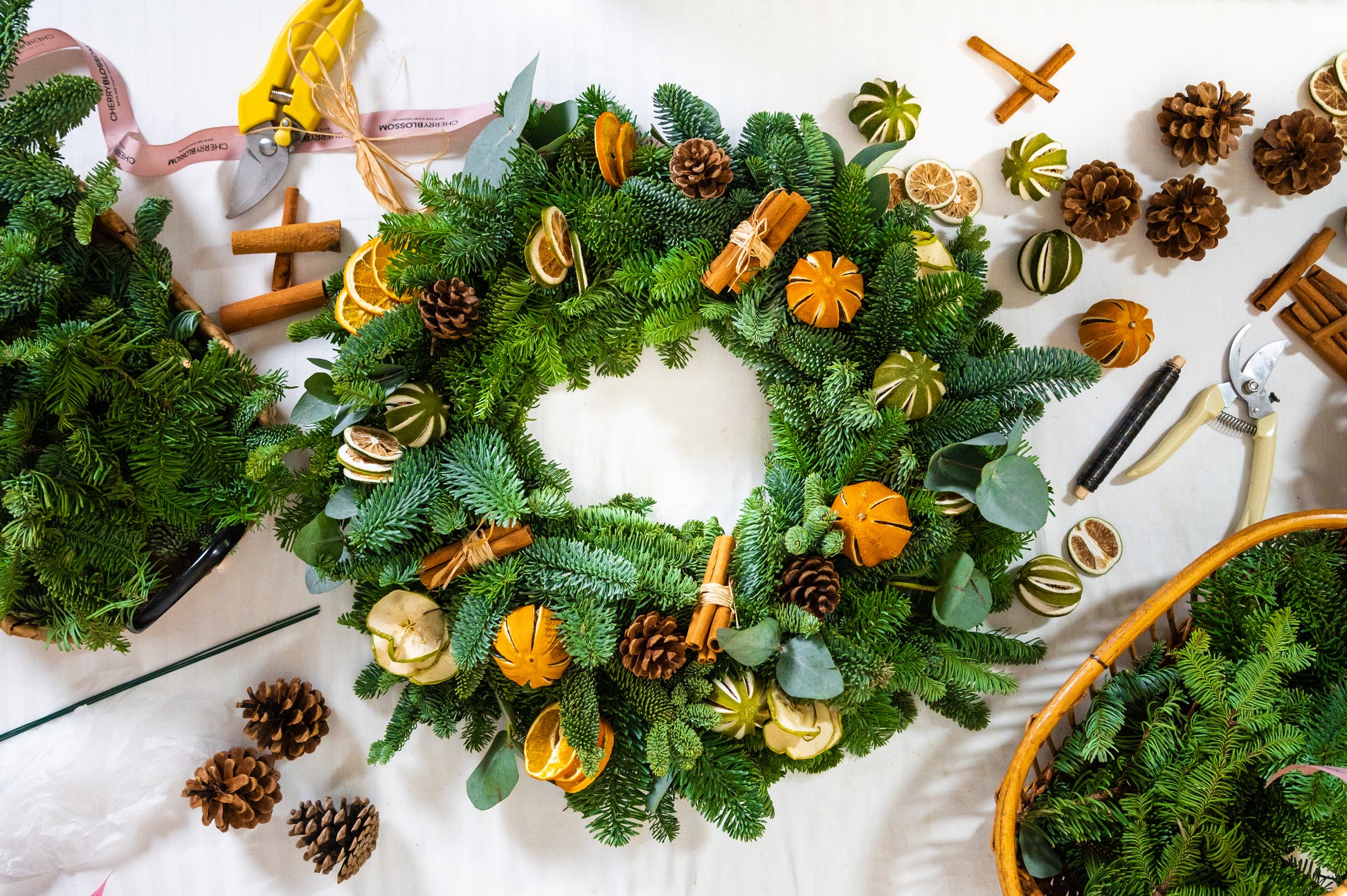 - A wide choice of decorating supplies including whole oranges and limes, orange slices, pine cones, cinnamon sticks and raffia.
