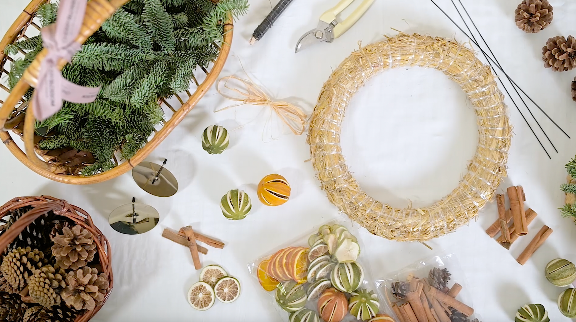 Now sitting in the comfort of your happy place, make your very own all natural wreath with fresh dehydrated fruits and cinnamon sticks! Whether it is a work activity or a family wreath or just on your own - hope you are ready to have lots of fun! If you are an expert already at wreath making then get right into it but most people are usually newbies. Don't you worry - we have an amazing step by step tutorial for you all, explaining every step of the way in detail. A DIY kit allows you to make your own wreath at your own pace and really express yourself creatively!